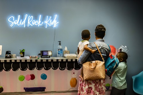 Firstly we have a check-in process to ensure the safety of each child. This happens at our Kids Registration area right outside our Nursery. You and your child will be given matching tags that are exclusive to your family and your visit. Your child will wear their name tag during the service. From there someone will help you to take your child into the nursery or direct you upstairs using the elevator or stairs, to our 1st - 5th Grade area. After the adult service is over, you will hand your tag to the volunteer at the classroom door, for your child to be released back to you.